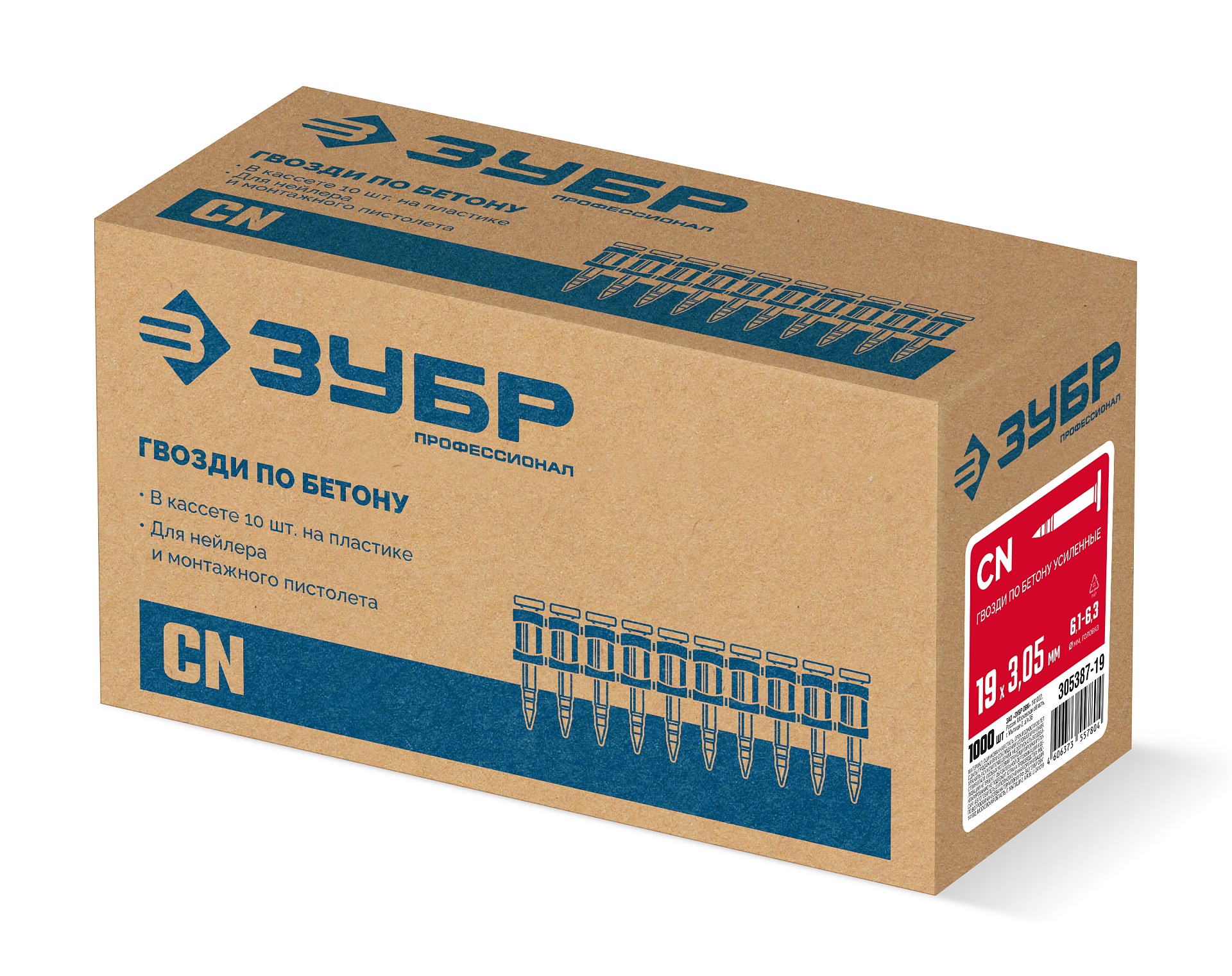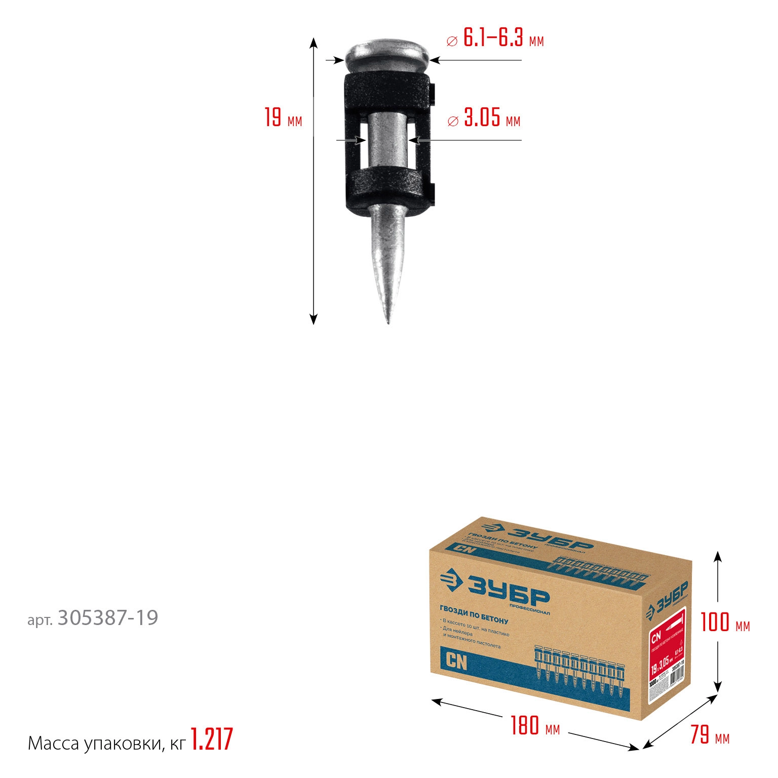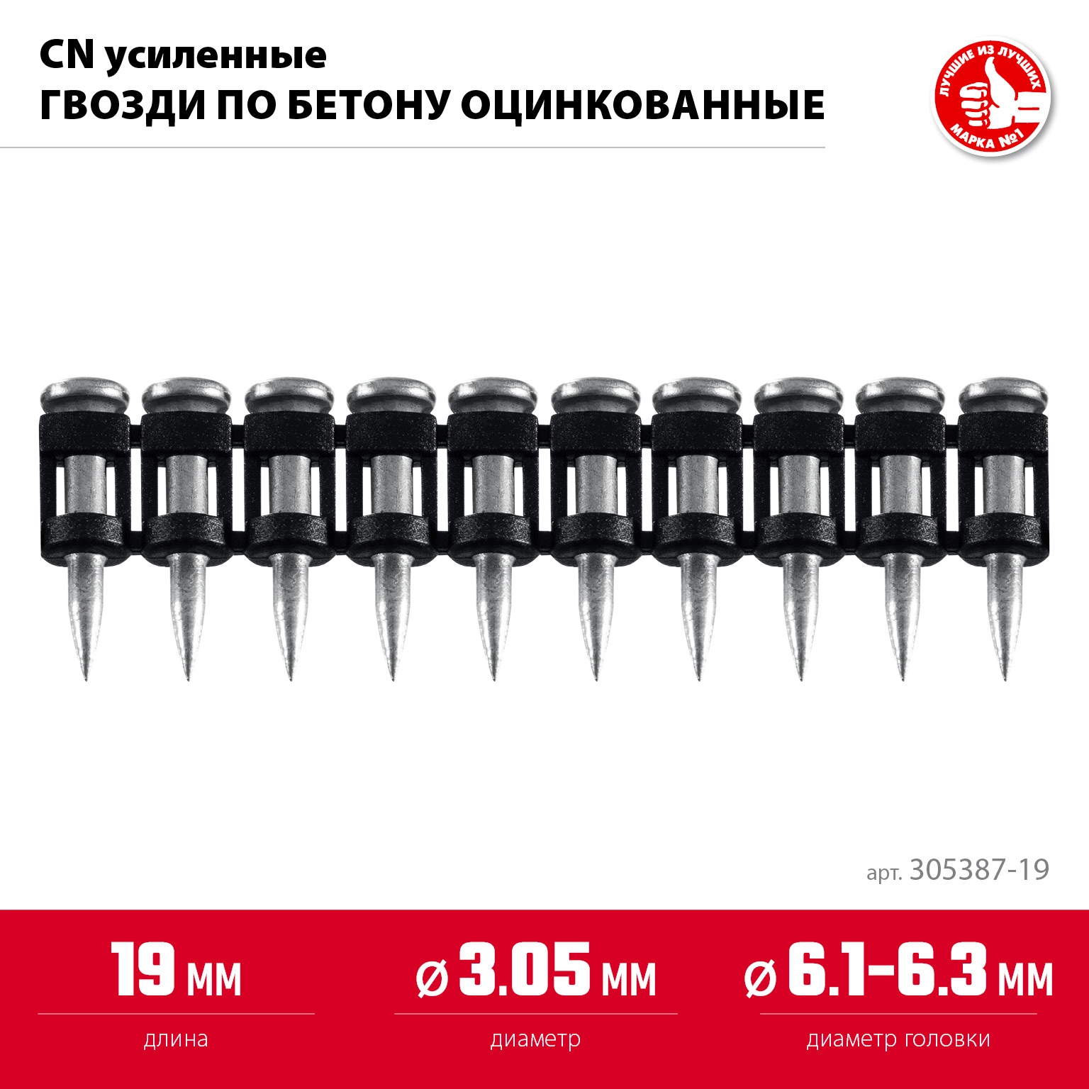 ПроизводителиГвозди монтажные по бетону оцинкованные CN усиленные 19х3.05мм, 1000 шт (305387-19) ЗУБР