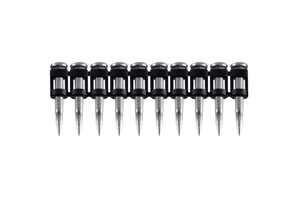 Усиленные гвозди по бетону соединены в кассету и забиваются при помощи газового или пневматического гвоздезабивного пистолета (нейлера). Кованый наконечник пулевидной формы облегчает вхождение в высокопрочные материалы.