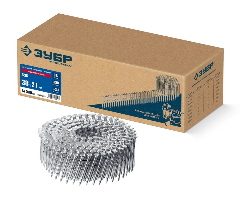 ПроизводителиГвозди монтажные по бетону оцинкованные CSN 38х2.1мм, 14000 шт (305386-38) ЗУБР