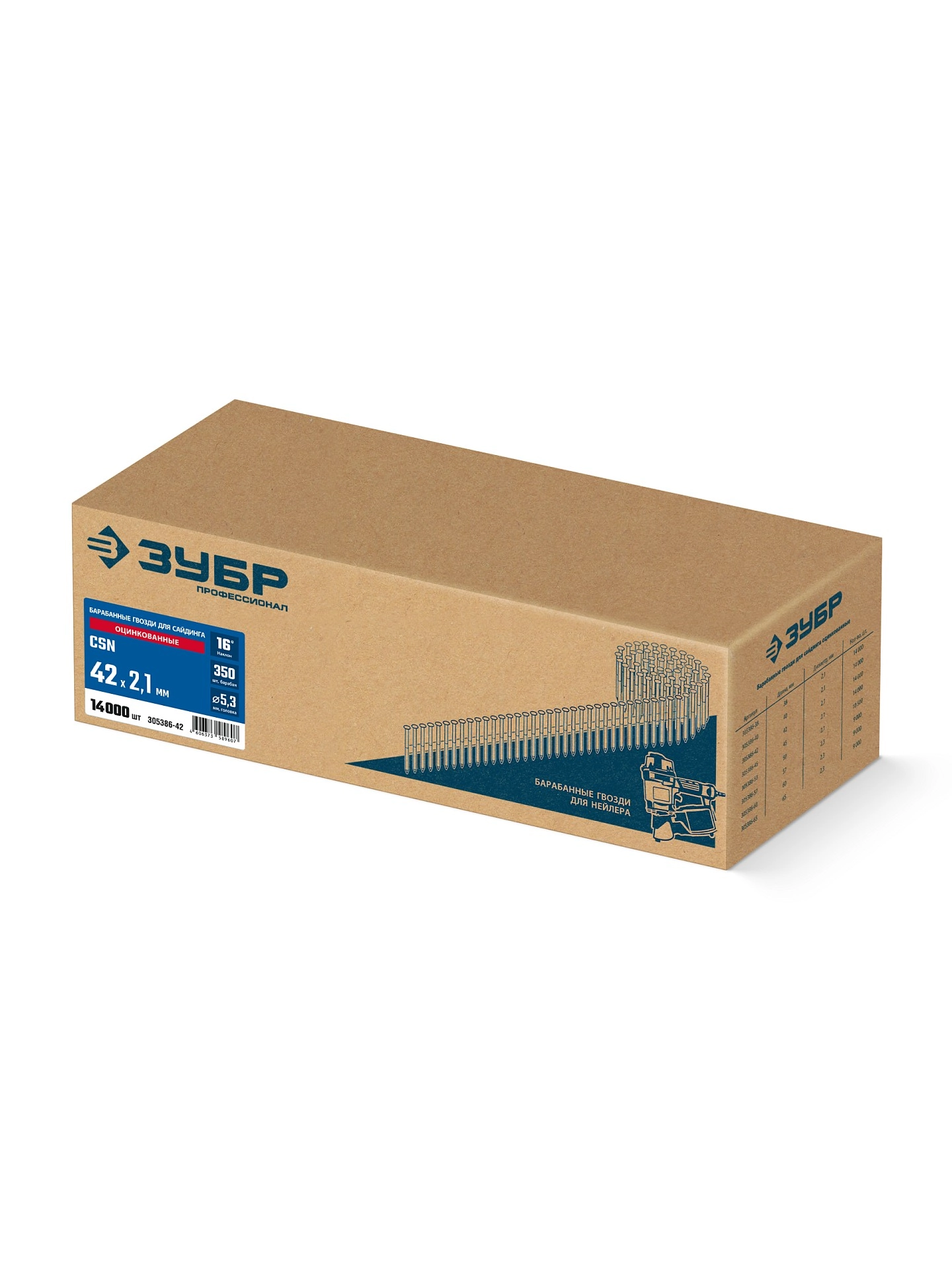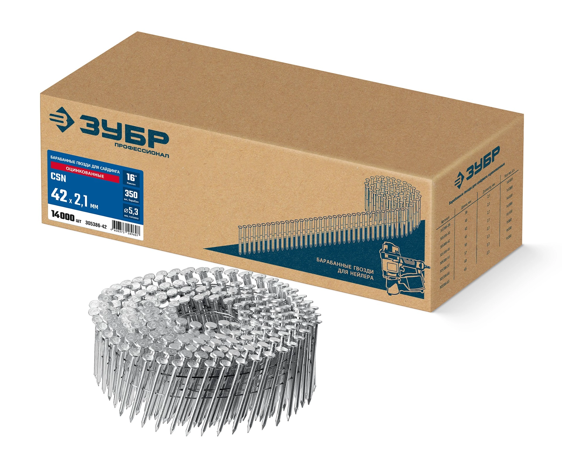 ПроизводителиГвозди монтажные по бетону оцинкованные CSN 42х2.1мм, 14000 шт (305386-42) ЗУБР