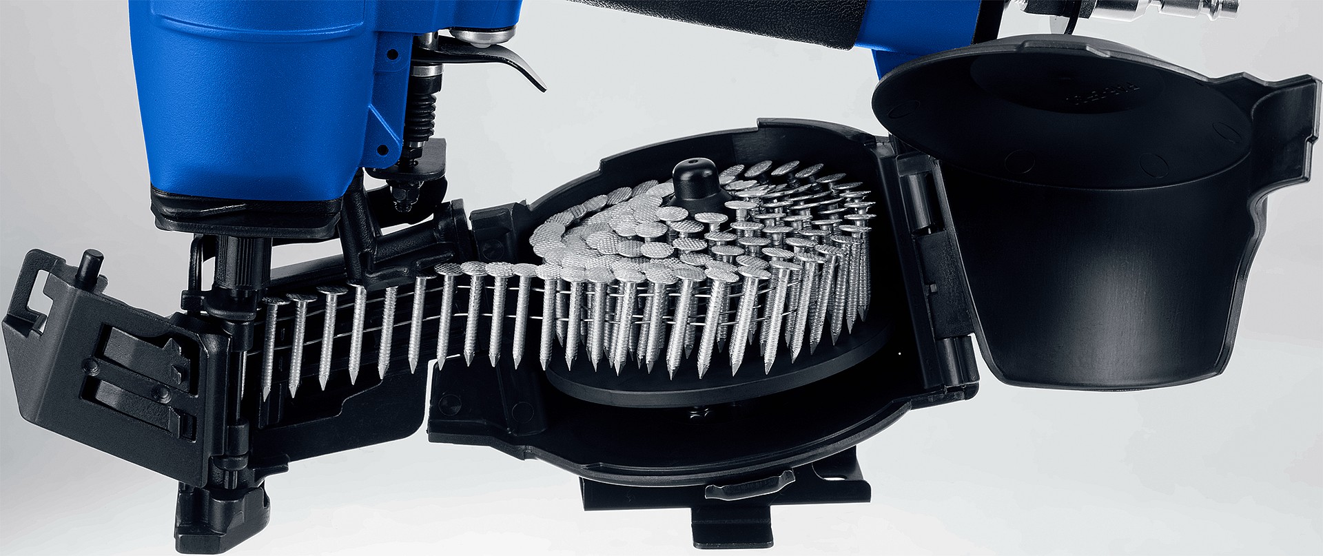 Барабанные гвозди для сайдинга соединены в обойму под углом 16° и забиваются при помощи гвоздезабивного пистолета (нейлера). Уменьшенный диаметр гвоздя оптимален для крепления сайдинга. Использование нейлера обеспечивает высокую скорость монтажа и удобство в работе.