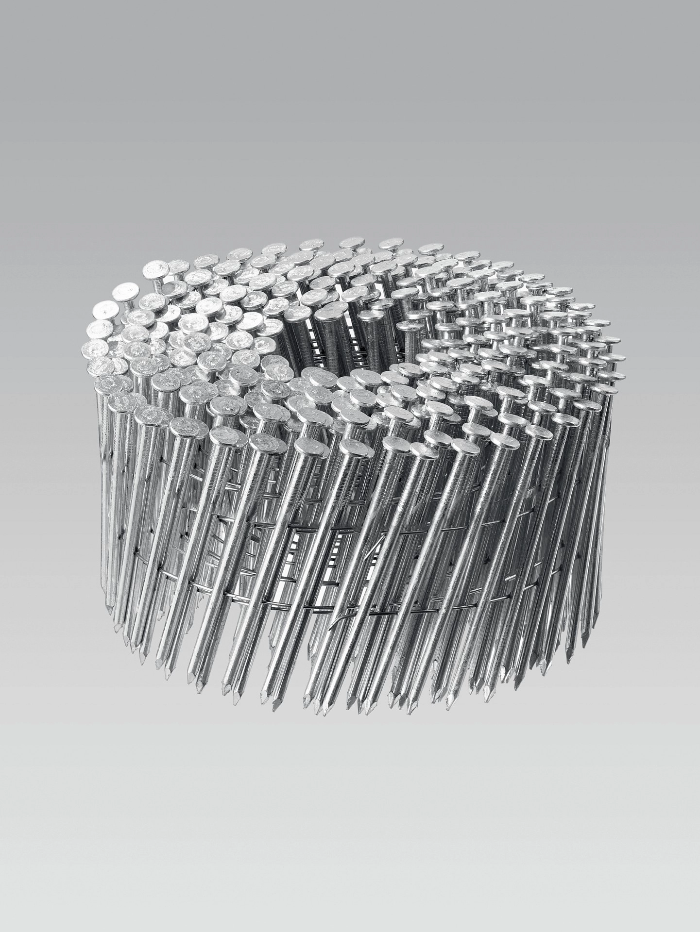Барабанные гвозди для сайдинга соединены в обойму под углом 16° и забиваются при помощи гвоздезабивного пистолета (нейлера). Уменьшенный диаметр гвоздя оптимален для крепления сайдинга. Использование нейлера обеспечивает высокую скорость монтажа и удобство в работе.