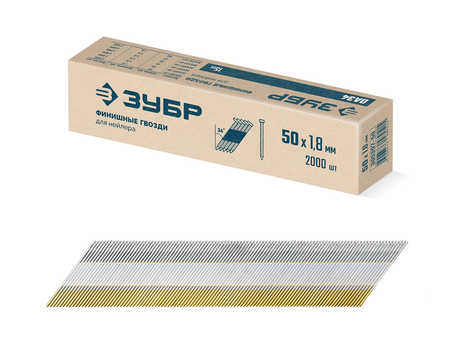 ПроизводителиГвозди монтажные по бетону оцинкованные DA34 50х1.8мм, калибр 15GA, 2000 шт (305397-50) ЗУБР