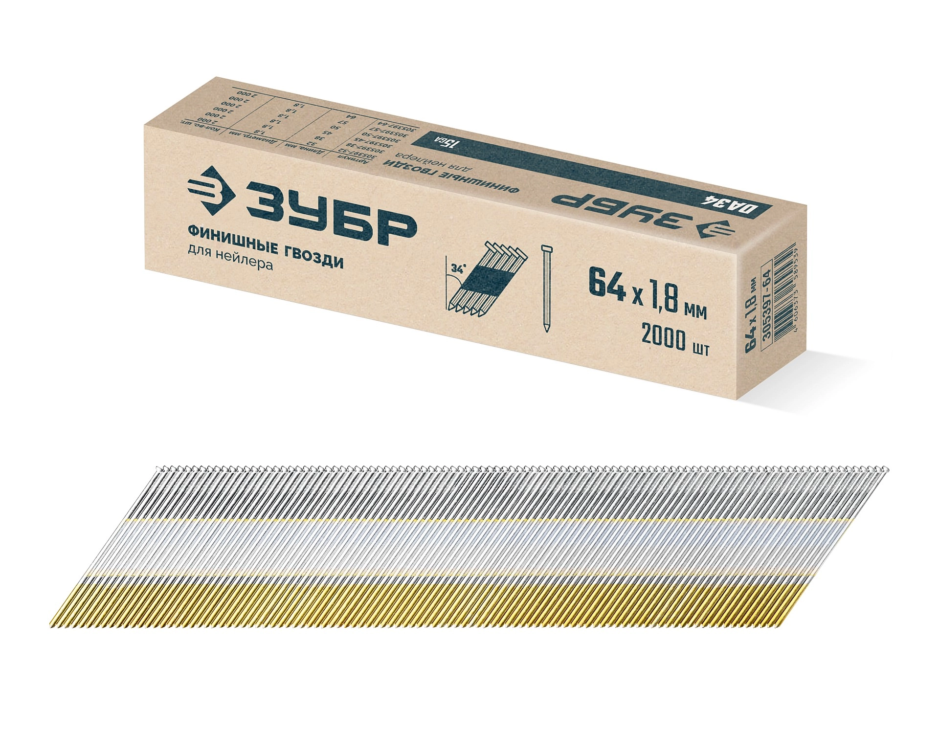 ПроизводителиГвозди монтажные по бетону оцинкованные DA34 64х1.8мм, калибр 15GA, 2000 шт (305397-64) ЗУБР
