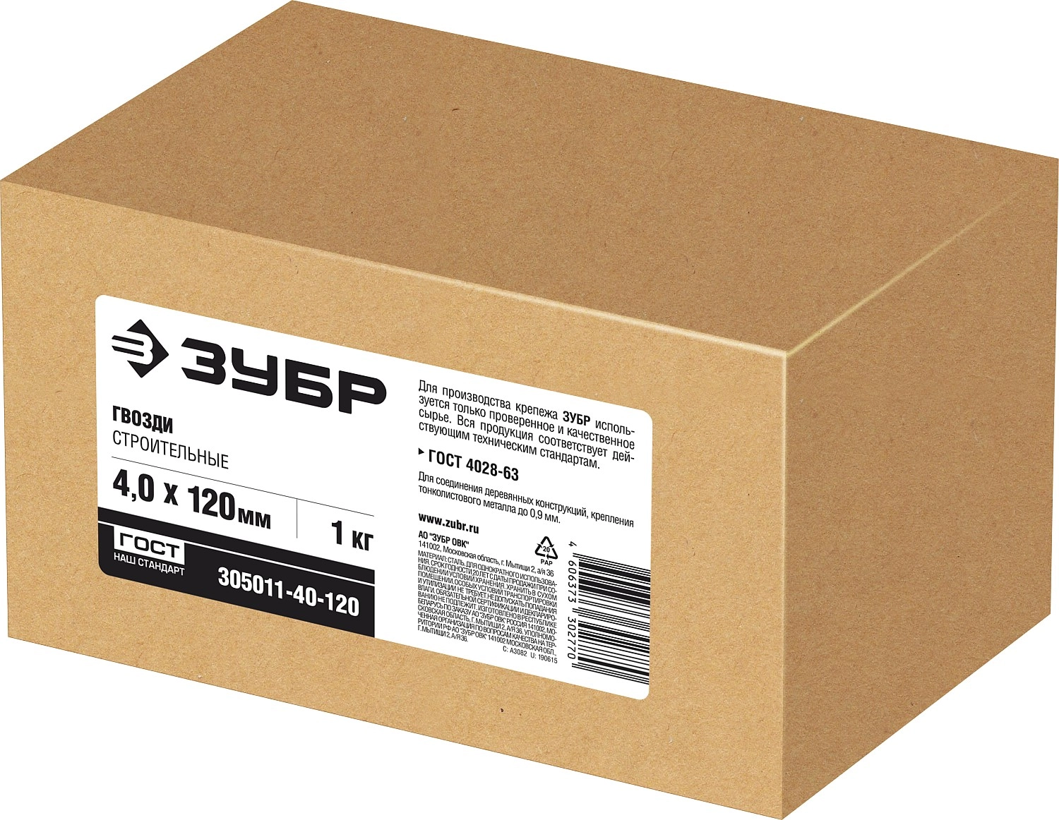 ПроизводителиГвозди строительные ГОСТ 4030-63, 120х4мм, 1кг (305011-40-120) ЗУБР