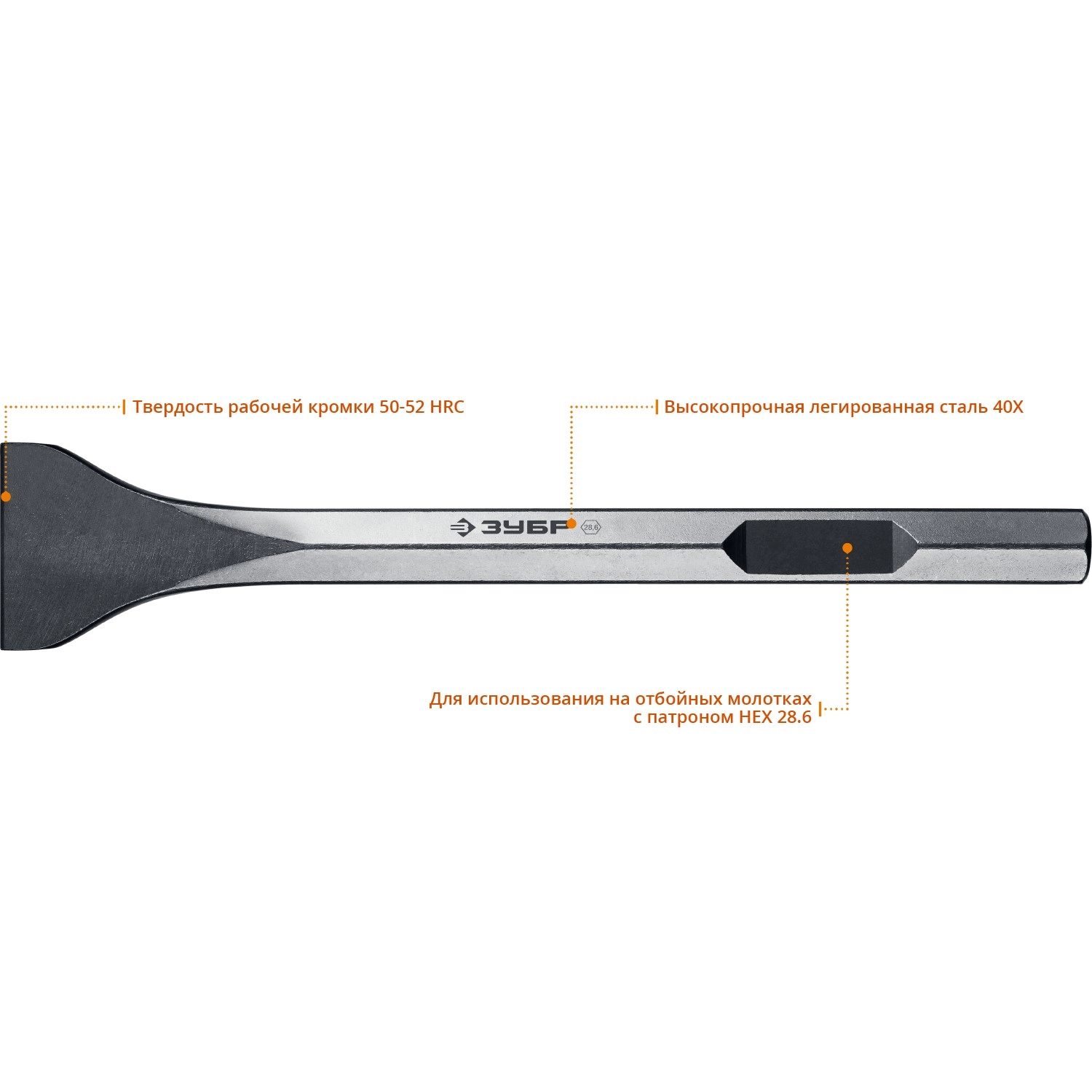 ПроизводителиЗубило лопаточное шест. HEX 28.6 (Макита тип) 400х80мм (29380-80-400) ЗУБР
