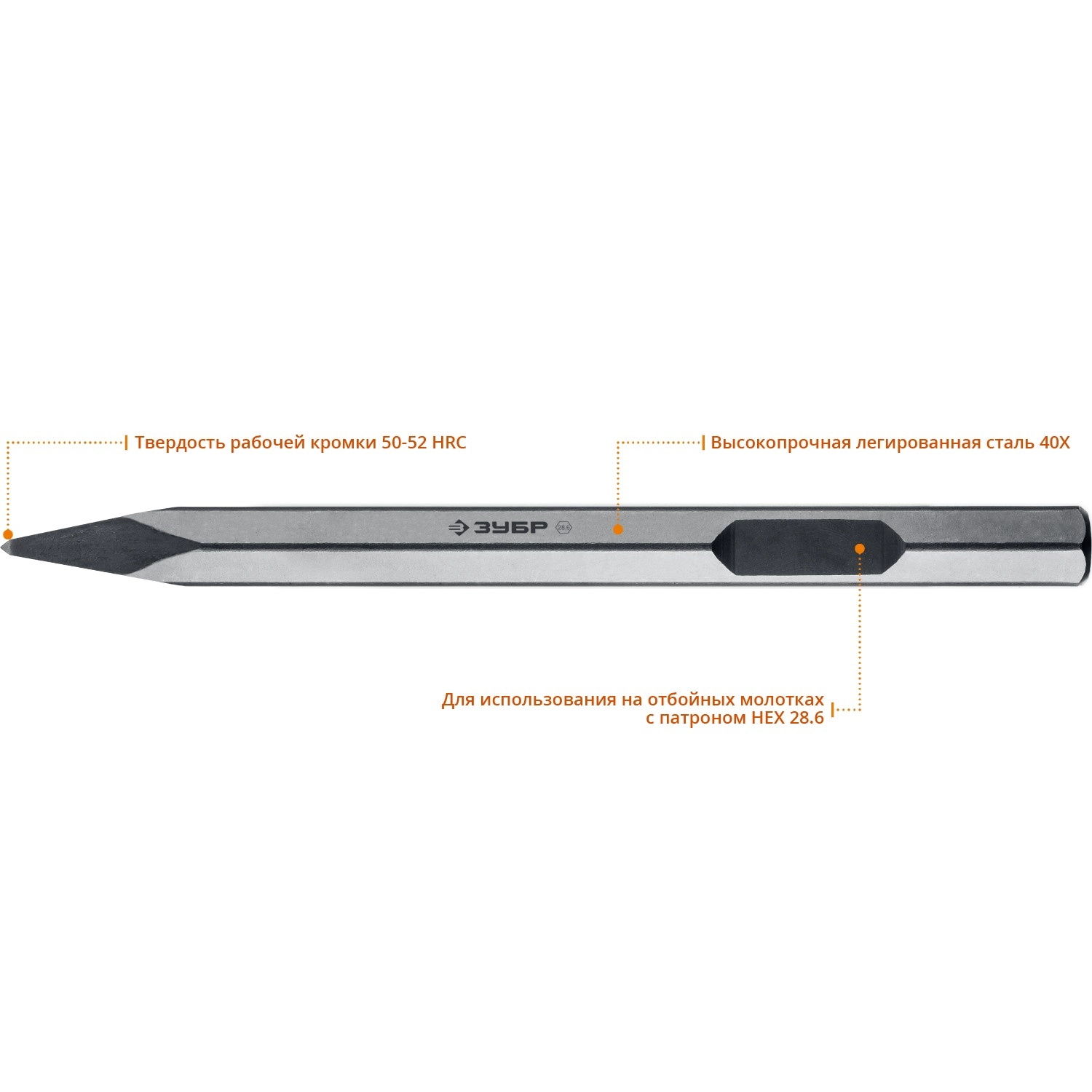 ПроизводителиЗубило пикообразное шест. HEX 28.6 (Макита тип) 400мм (29380-00-400) ЗУБР