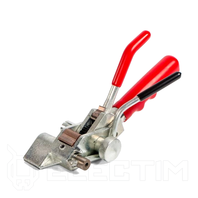 ИНТу-20 Инструмент с храповым механизмом для натяжения стальной ленты на опорах, КВТ 74030 — универсальный инструмент для натяжения лент из нержавеющей стали и стальных стяжек с шариковым замком. Предназначен для натяжения и обрезки ленты из нержавеющей стали при монтаже кронштейнов и крюков на опорах ВЛИ и крепеже тары. Инструмент также может быть использован для монтажа стяжек СКС и СКС-П шириной 12 мм