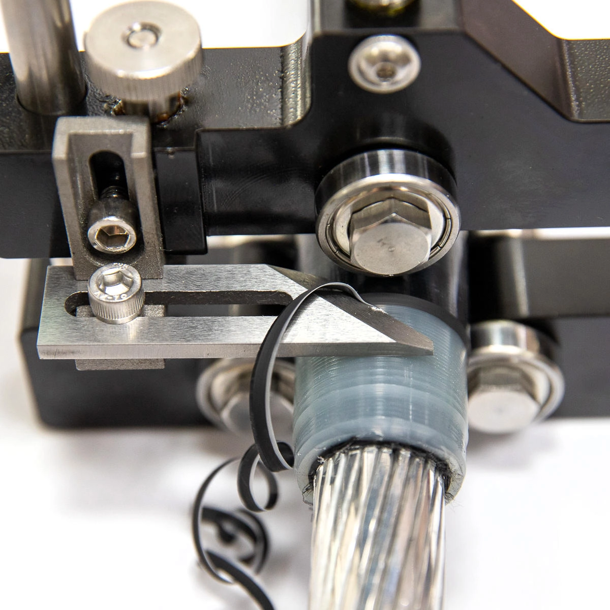 КСП-70 Инструмент для снятия полупроводящего экрана на кабелях с изоляцией из сшитого полиэтилена, КВТ 70351 — предназначен для снятия изоляции и полупроводящего экрана на высоковольтных кабелях с изоляцией из сшитого полиэтилена диаметром от 35 до 70 мм