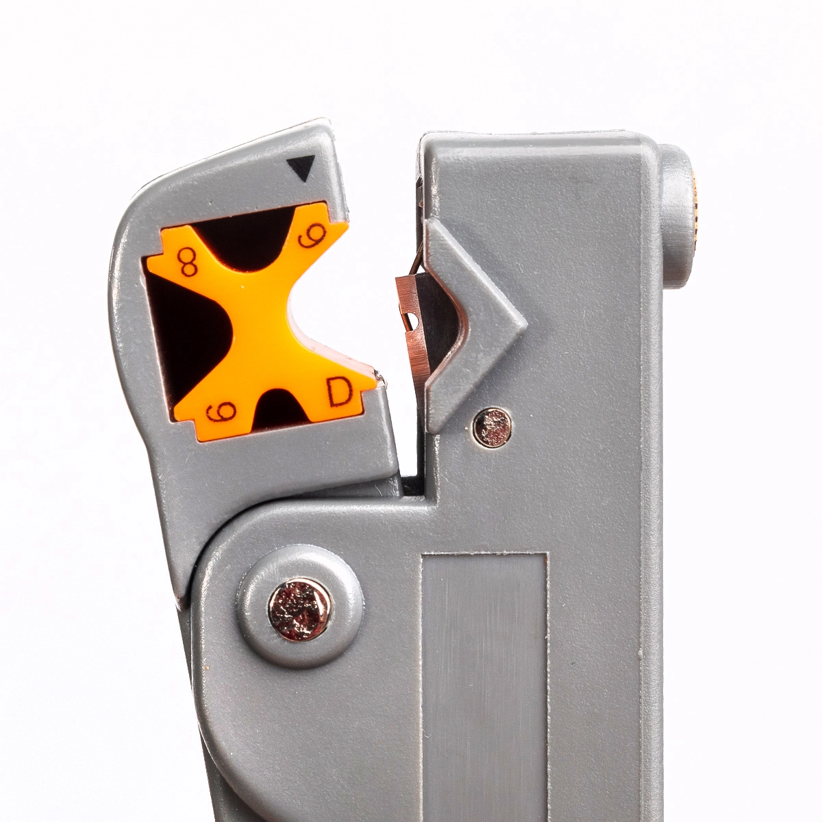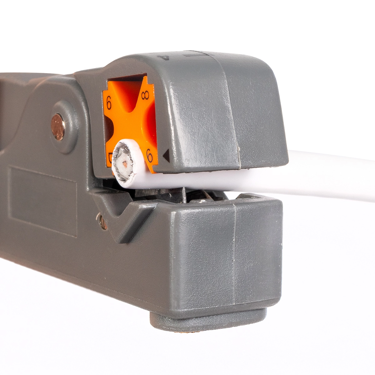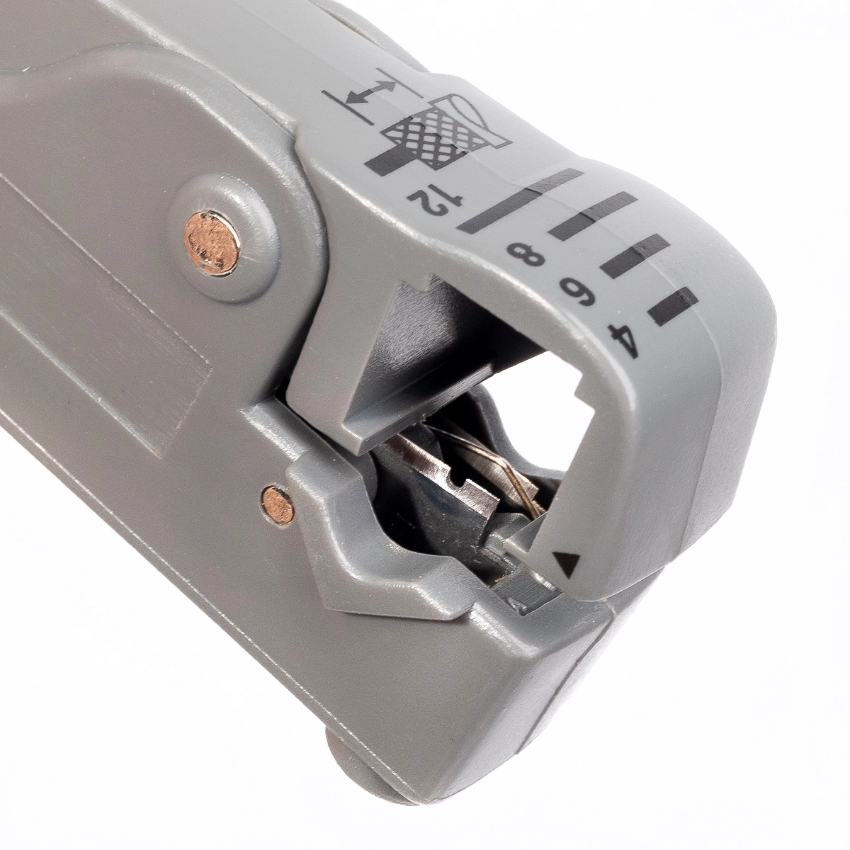 Характеристики КВТ КС-332, серия «Профи»: Разделка кабелей: RG58/59/62/6/3С/4С/5С Два режущих лезвия с регулировкой глубины реза Длина снятия изоляции: 4/6/8/12 мм Индивидуальная настройка лезвий Шестигранный регулировочный ключ в комплекте Вращающийся X-образный блок с рекомендуемым размером кабеля Вес: 34 г Длина: 99 мм Характеристики