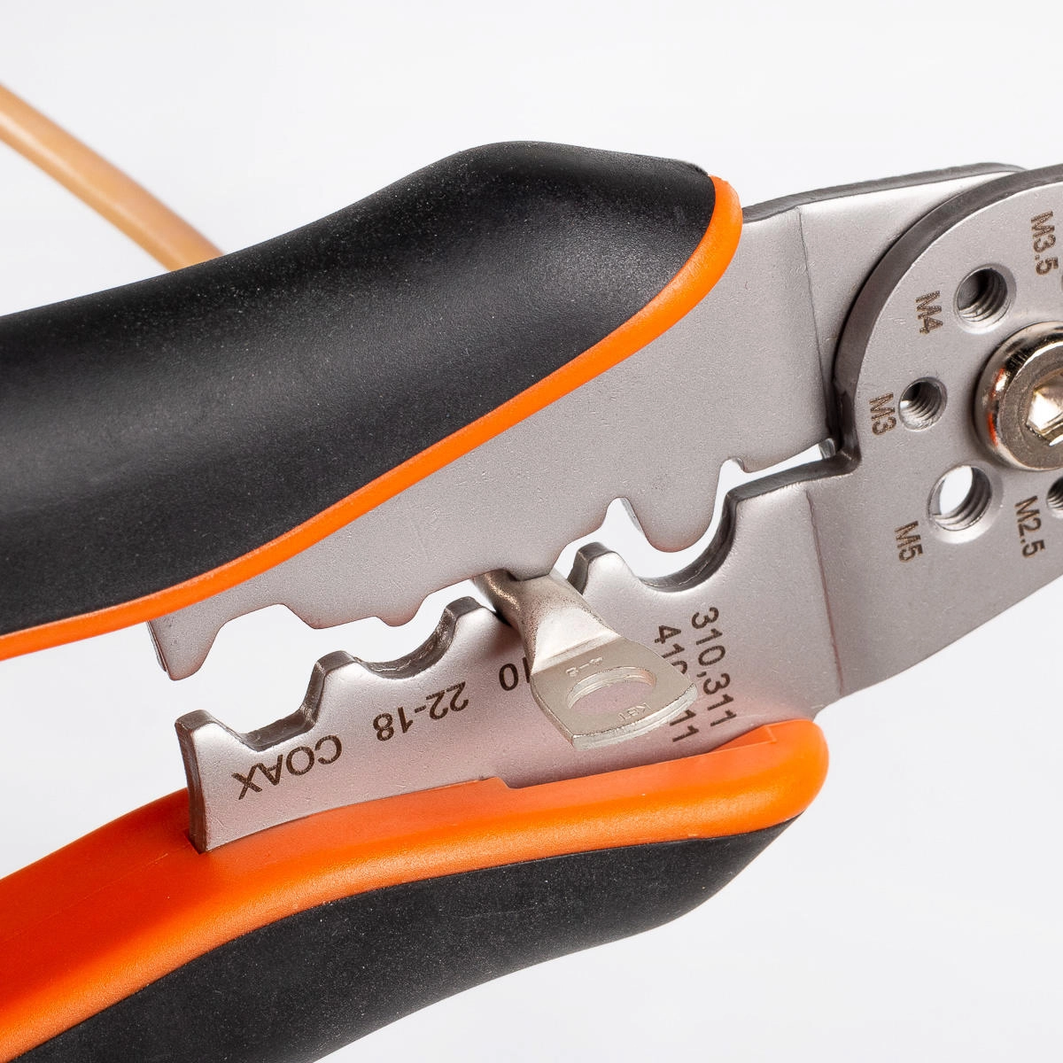 Характеристики КВТ WS-01D: 6 в 1: снятие изоляции и резка проводов сечением 0.5–6.0 мм2 резка винтов М2.5, М3, М3.5, М4, М5 опрессовка наконечников сечением 0.5–6 мм2 и коаксиальных разъемов пассатижи отверстия для формирования петель