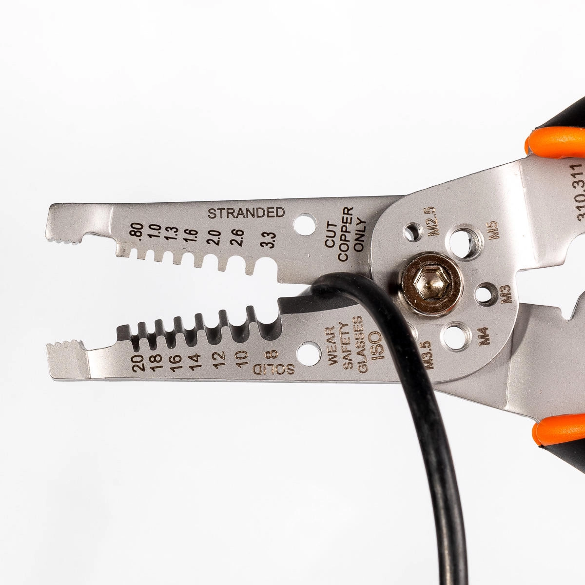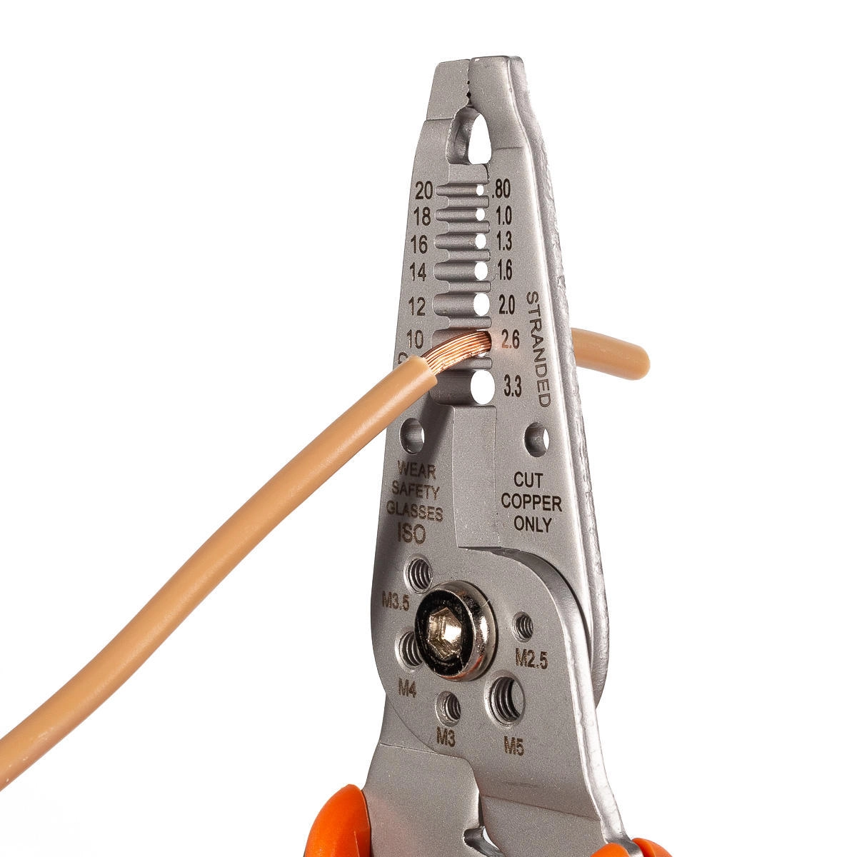 Семипозиционные прецизионно заточенные лезвия для снятия изоляции Материал корпуса: нержавеющая сталь Эргономичные двухкомпонентные рукоятки со вставками из нескользящей TPR-резины Соединительный винт с возможностью регулировки Вес: 160 г Длина: 210 мм Характеристики