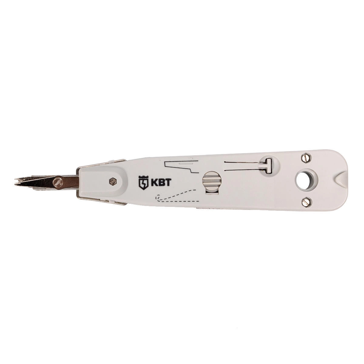 PD-01 Инструмент для заделки витой пары в кросс-панель, КВТ 85736 — предназначен для заделки и обрезки проводников во врезные контакты на кроссах, патч-панелях, розетках и модулях, заделки контактов 110 типа и типа KRONE
