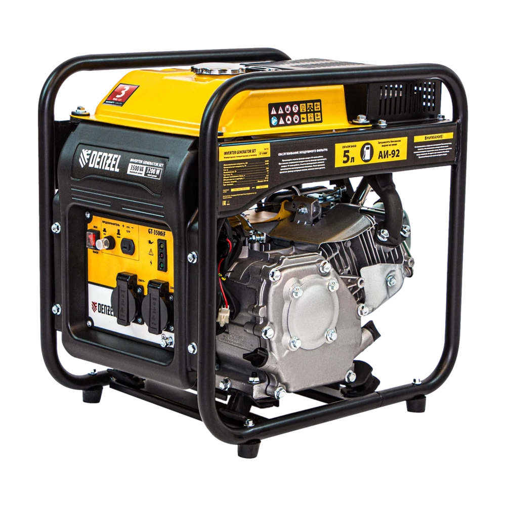 ПроизводителиИнверторная генераторная установка GT-3500iF, 3,5 кВт, 230 В,открытый корпус,ручной старт Denzel