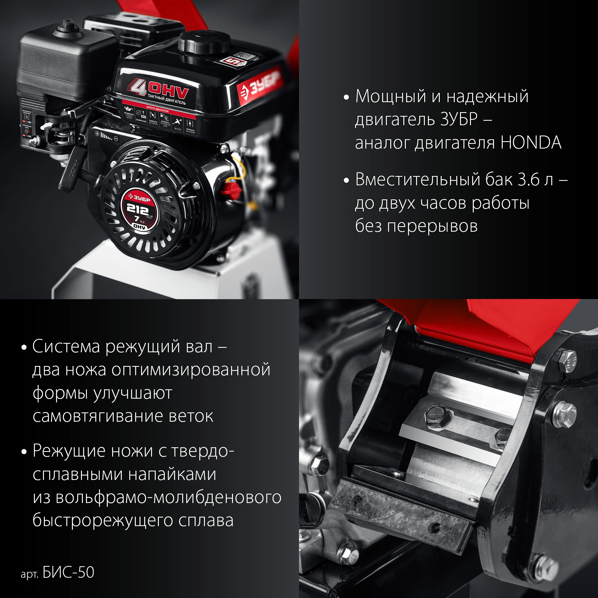 ПроизводителиИзмельчитель садовый бензновый 50 мм (БИС-50) ЗУБР