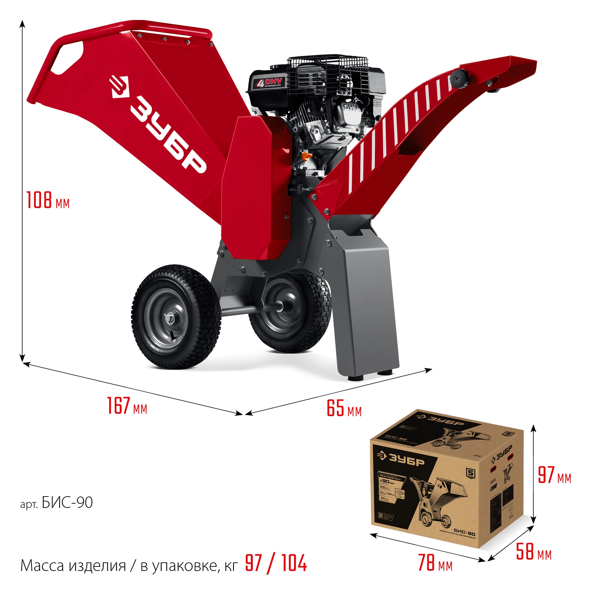 ПроизводителиИзмельчитель садовый бензновый 90 мм (БИС-90) ЗУБР