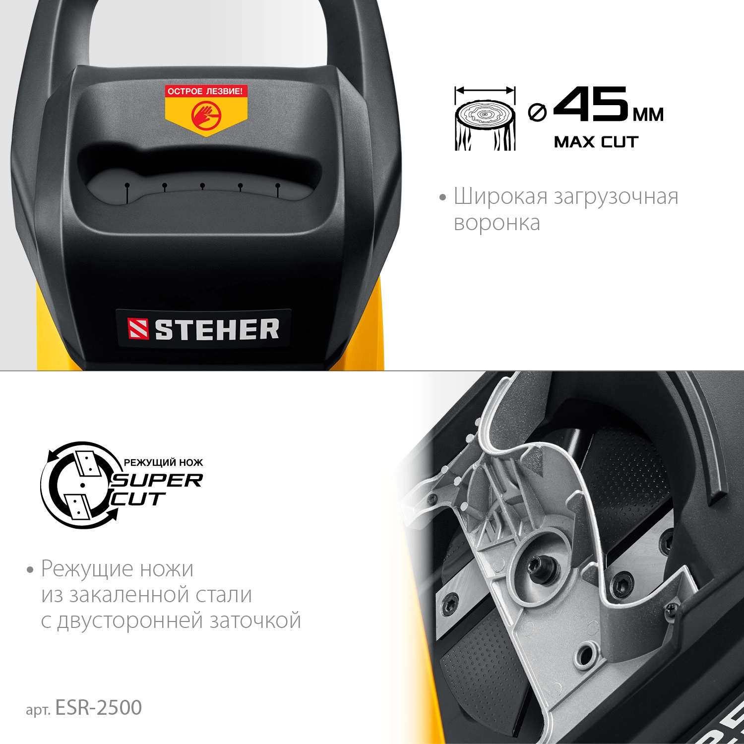 ПроизводителиИзмельчитель садовый элект. ESR-2500 (2500 Вт, р/с 45 мм, кор.) STEHER