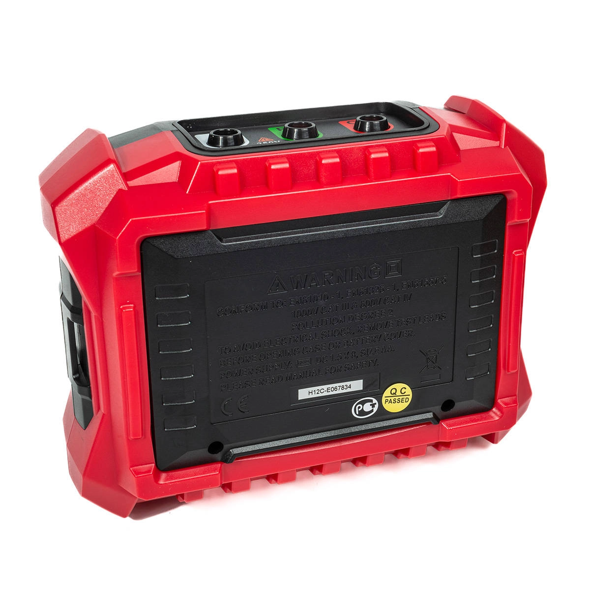 Напряжение заземления: – 0–200 В – погрешность: ±1%+5D, разрешение 0.1 В Двух- и трехпроводной метод измерения сопротивления Режим относительных измерений Функции: MAX/MIN/AWG Большой ЖК-дисплей с аналоговой шкалой с подстветкой Хранение данных: до 100 замеров Индикация заряда батареи Автоматическое отключение питания Батарейки: 1.5 В АА, 8 шт. Вес с батарейками: 772 г Габариты: 185х145х70 мм В комплекте: измеритель сопротивления, измерительные щупы 2, 10 и 15 метров, шина заземления, батарейки, защитный кейс, инструкция Характеристики