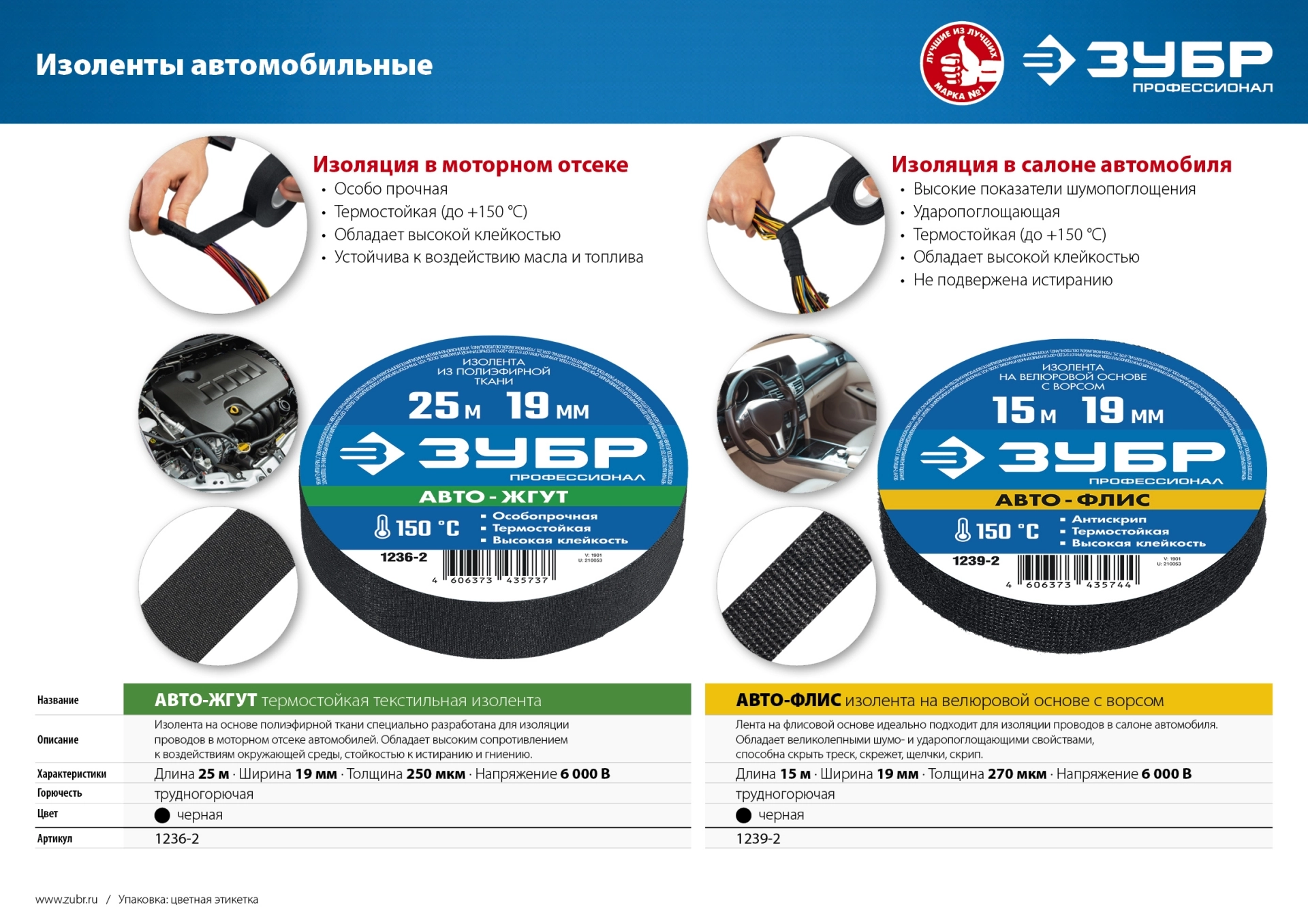 ПроизводителиИзолента термостойкая, 19мм/25м, черная "АВТО-Жгут" "ПРОФЕССИОНАЛ" (1236-2) ЗУБР