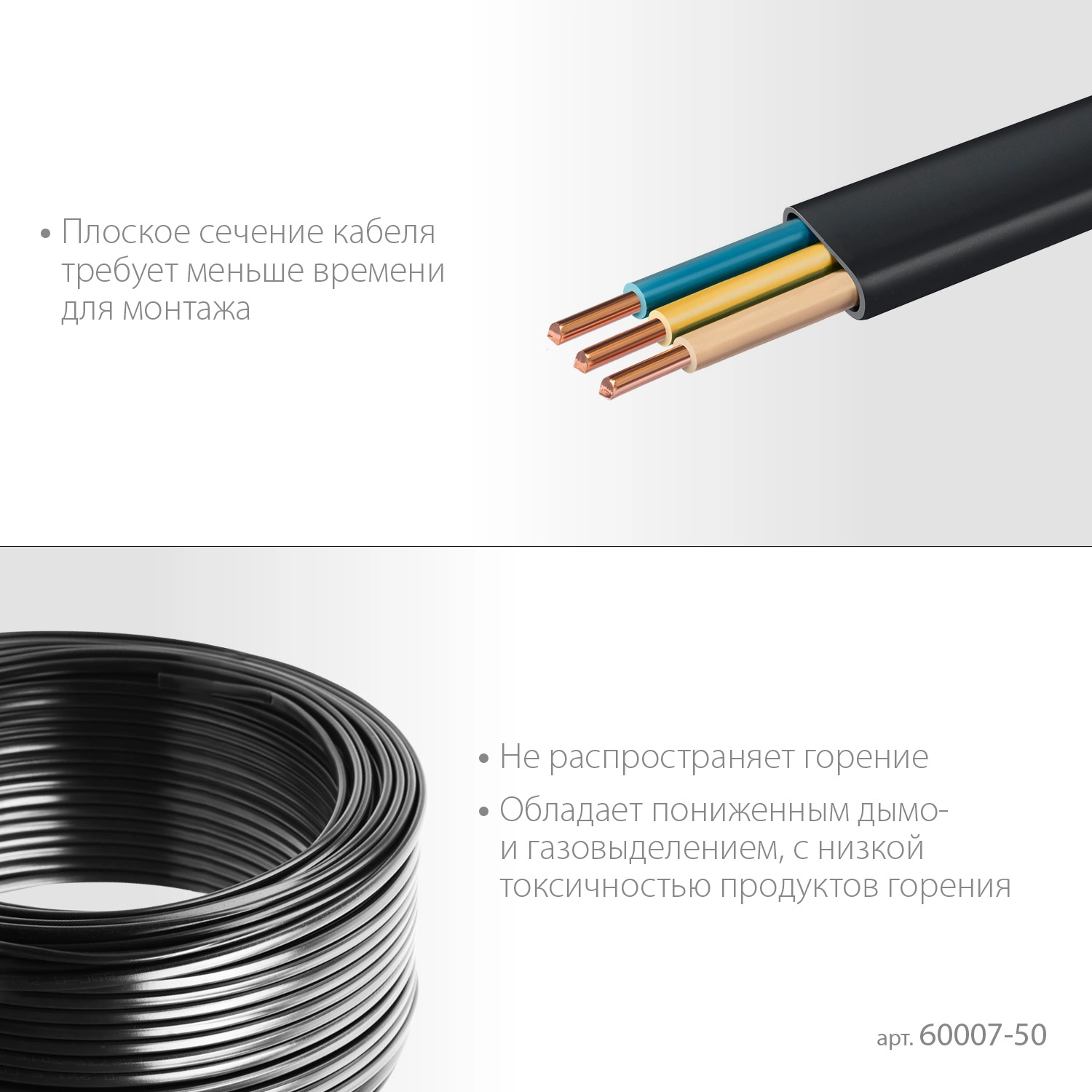 ПроизводителиКабель силовой плоский с пониж дымо-газ ВВГ-ПнгА-LS, 3х2.5мм2, 50 м, ГОСТ 31996-2012 (60007-50) ЗУБР