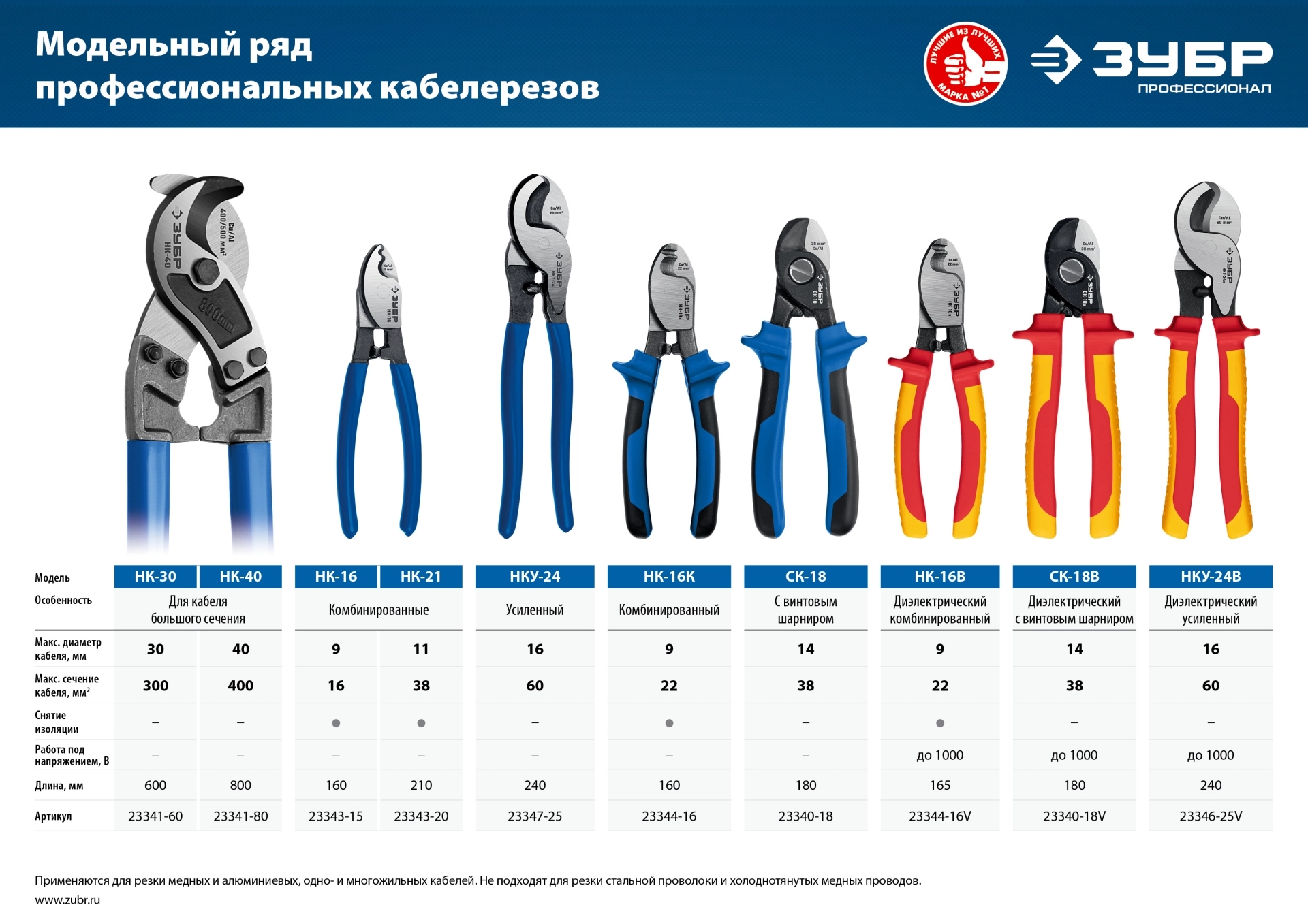 ПроизводителиКабелерез диэл., d 14 мм, 180 мм (23340-18V) ЗУБР
