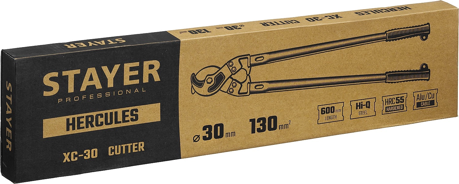 Кабелерезы STAYER изготовлены из высококачественной стали и предназначены для перекусывания неармированного одножильного или многожильного кабеля из цветных металлов (Cu + Al) без деформации и замятия краев. Максимальный диаметр кабеля 25мм.