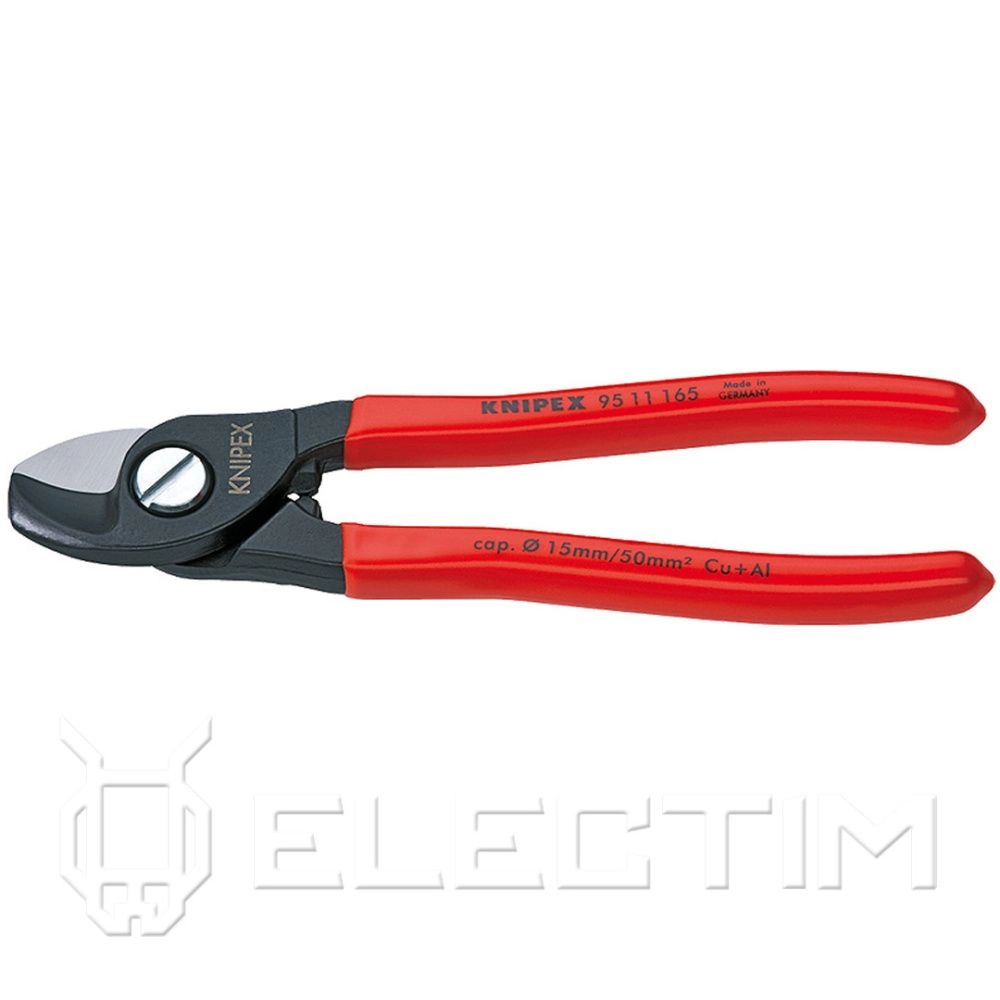 ПроизводителиКабелерез, рез: кабель D 15мм (50мм, AWG 1/0), 165мм, чёрный, обливные рукоятки, SB (9511165) KNIPEX