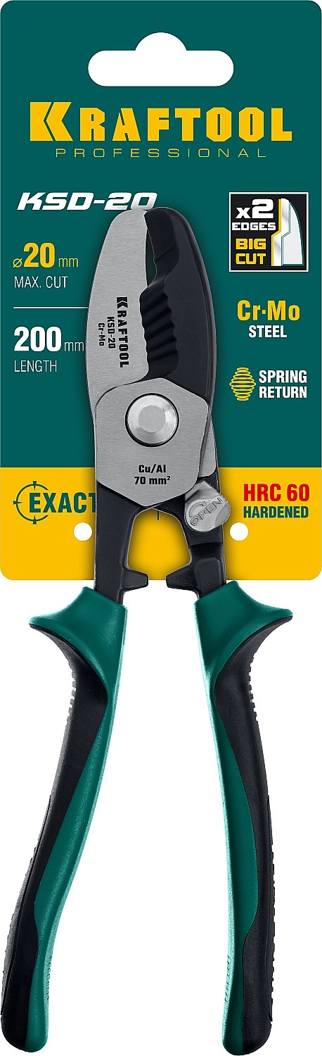 ПроизводителиКабелерез с двойными режущими кромками Ø20 мм 200 мм KSD-20 (23332-20) KRAFTOOL