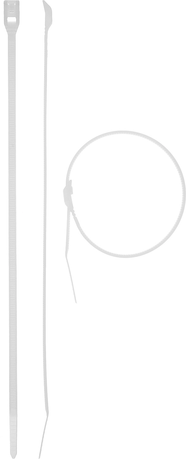 ПроизводителиХомут стяжка нейлон Ø 3.6x370 мм белый плоский замок 50шт. (30930-36-370) ЗУБР