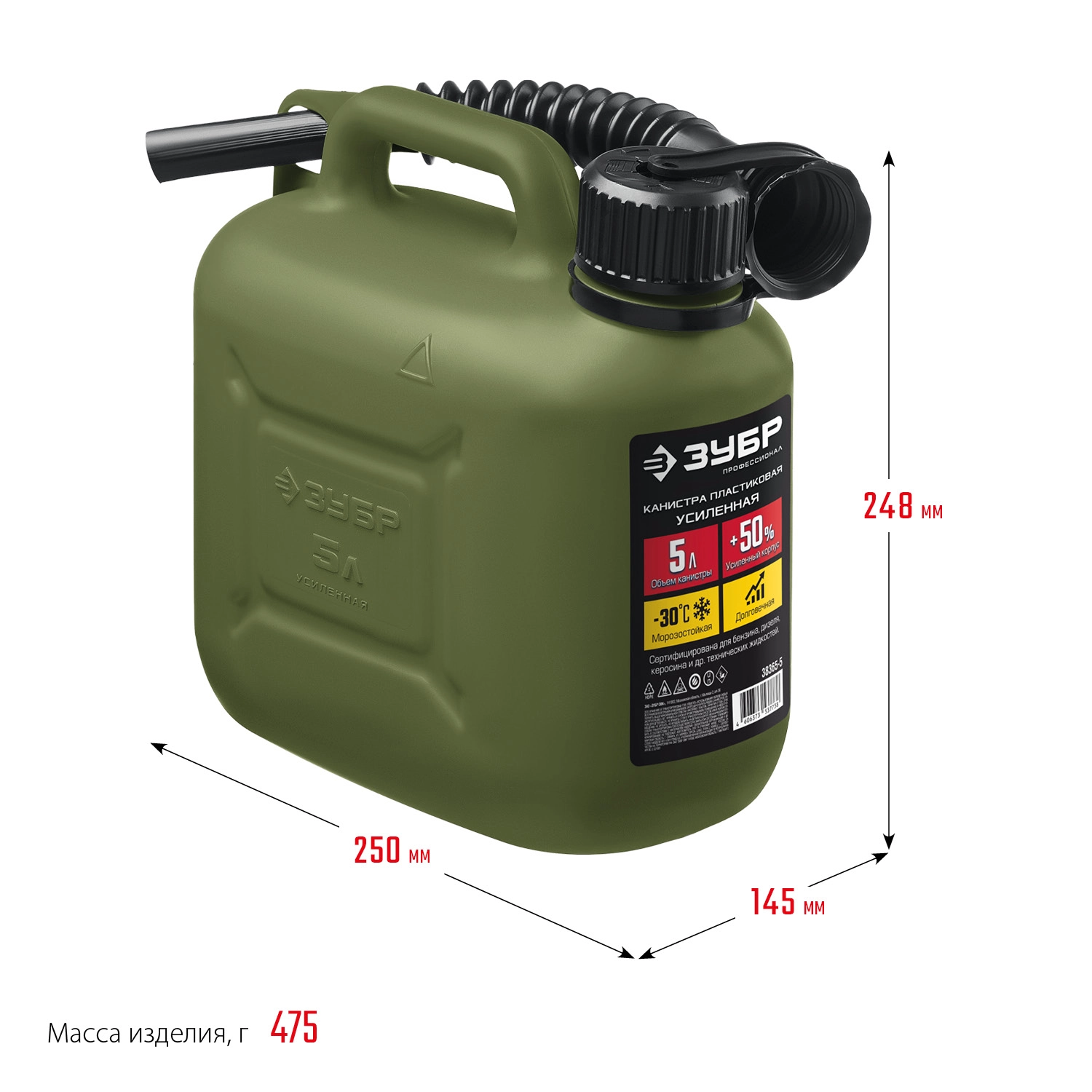 ПроизводителиКанистра пластиковая усиленная 5л "ПРОФЕССИОНАЛ" (38365-5) ЗУБР