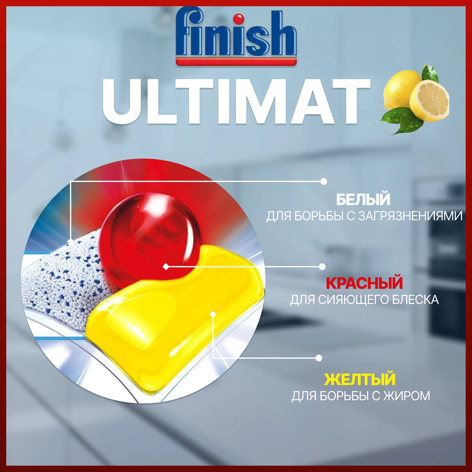 Глубокая чистка Ослепительная яркость Finish Ultimate All in 1 Lemon 60шт для глубокой очистки и ослепительной яркости — с первого раза и всегда. Компактный трехкомпонентный химический состав эффективно расщепляет все виды пищевых остатков даже без предварительного ополаскивания. Химическая нагрузка на 25 % ниже, чем у традиционных порошковых прессованных таблеток Finish.Производитель:
