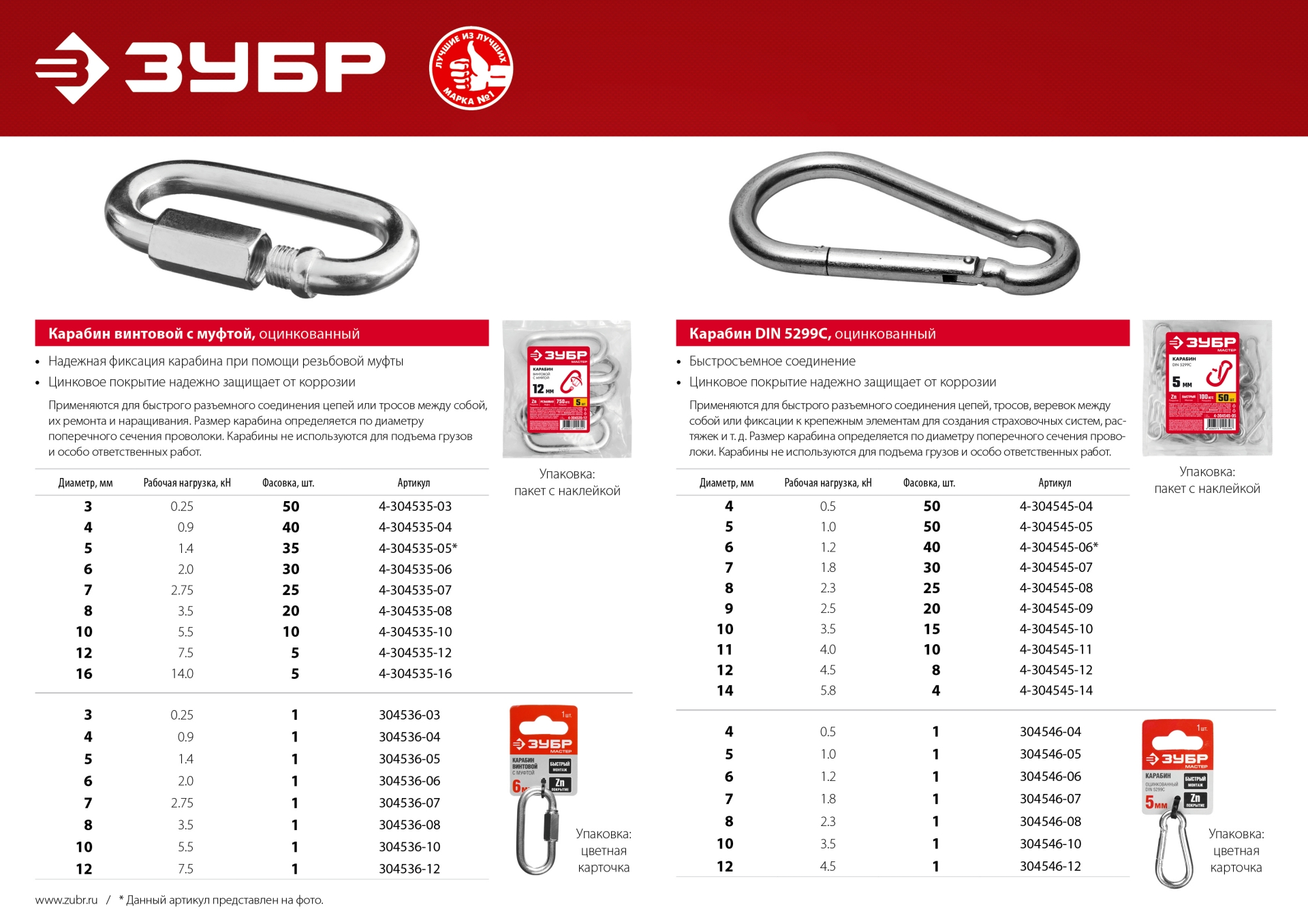 ПроизводителиКарабин быстросъемный DIN 5299C, 7мм, 30 шт, (4-304545-07) ЗУБР
