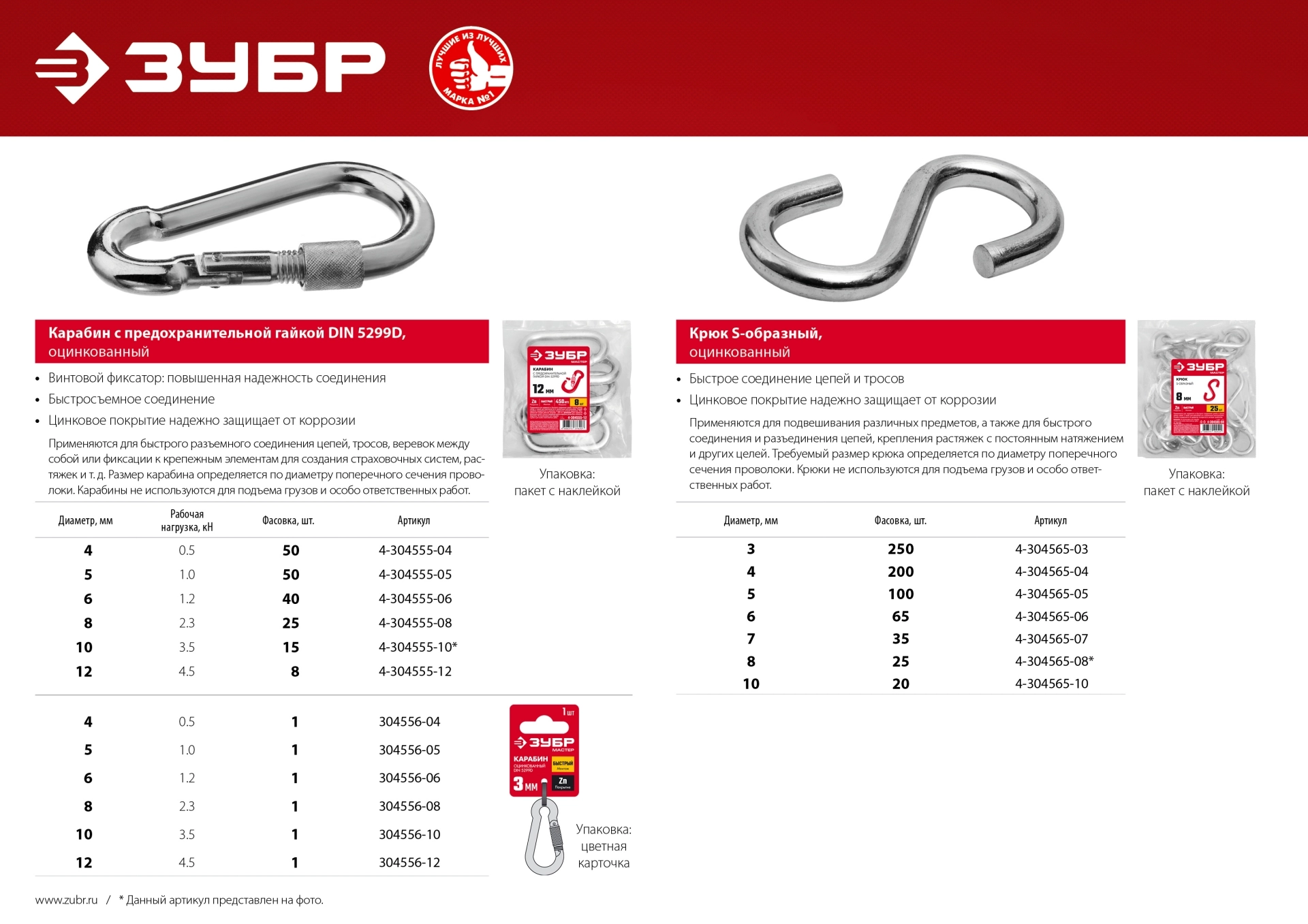 ПроизводителиКарабин с предохранительной гайкой DIN 5299D, 10мм, 15 шт, (4-304555-10) ЗУБР