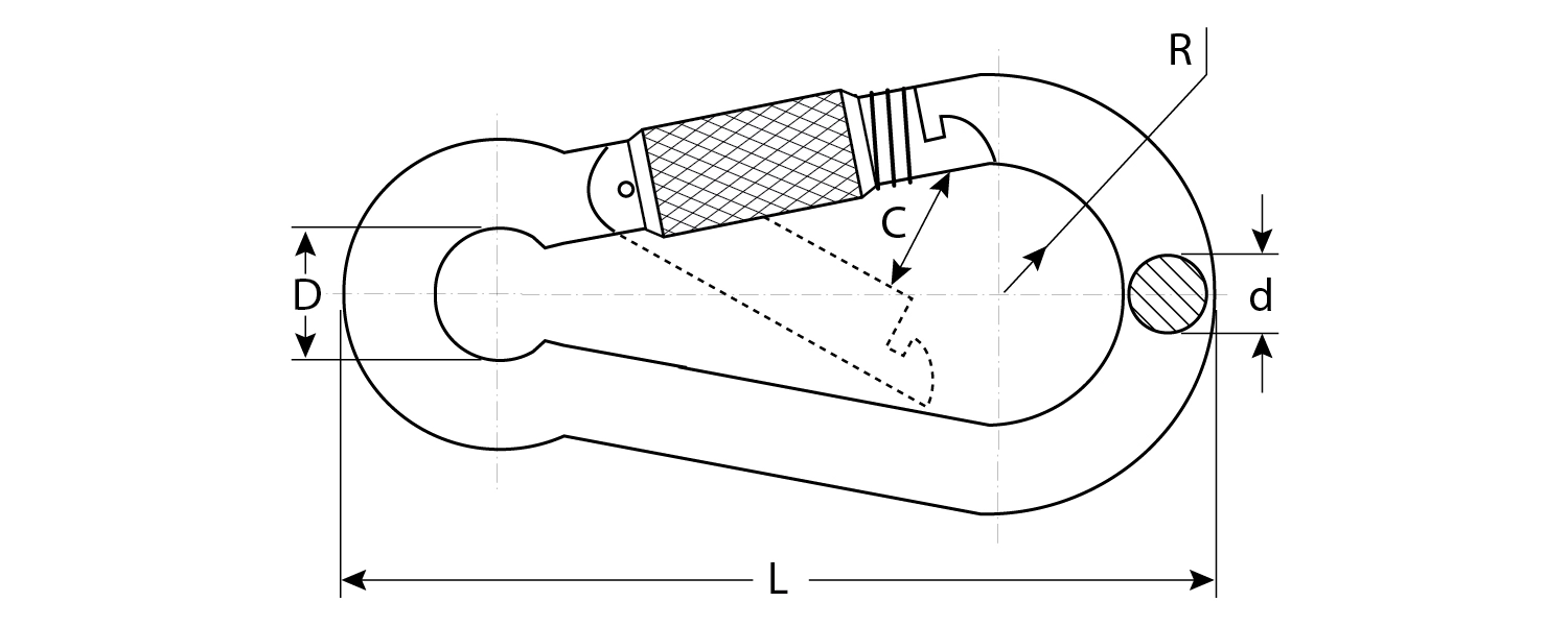 Грузовой крепеж предназначен для фиксации и перемещения грузов с помощью цепей и тросов в различных грузоподъемных механизмах и устройствах. Обладает повышенной прочностью и стойкостью к износу, выдерживает значительные нагрузки без деформации. Карабин изготовлен по стандарту DIN5299D и удобен в использовании благодаря простой конструкции. Предохранительная гайка (фиксатор) повышает надежность соединения. Размер карбина определяется по диаметру поперечного сечения проволоки.