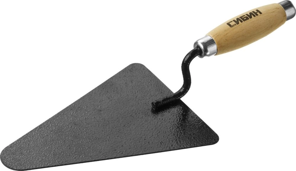 кельма используется для нанесения строительных растворов, стальное полотно обеспечивает прочность конструкции, а деревянная ручка удобство в работе