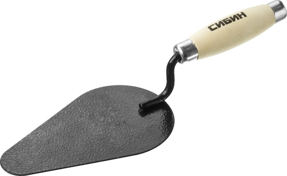 кельма используется для нанесения строительных растворов, стальное полотно обеспечивает прочность конструкции, а деревянная ручка удобство в работе