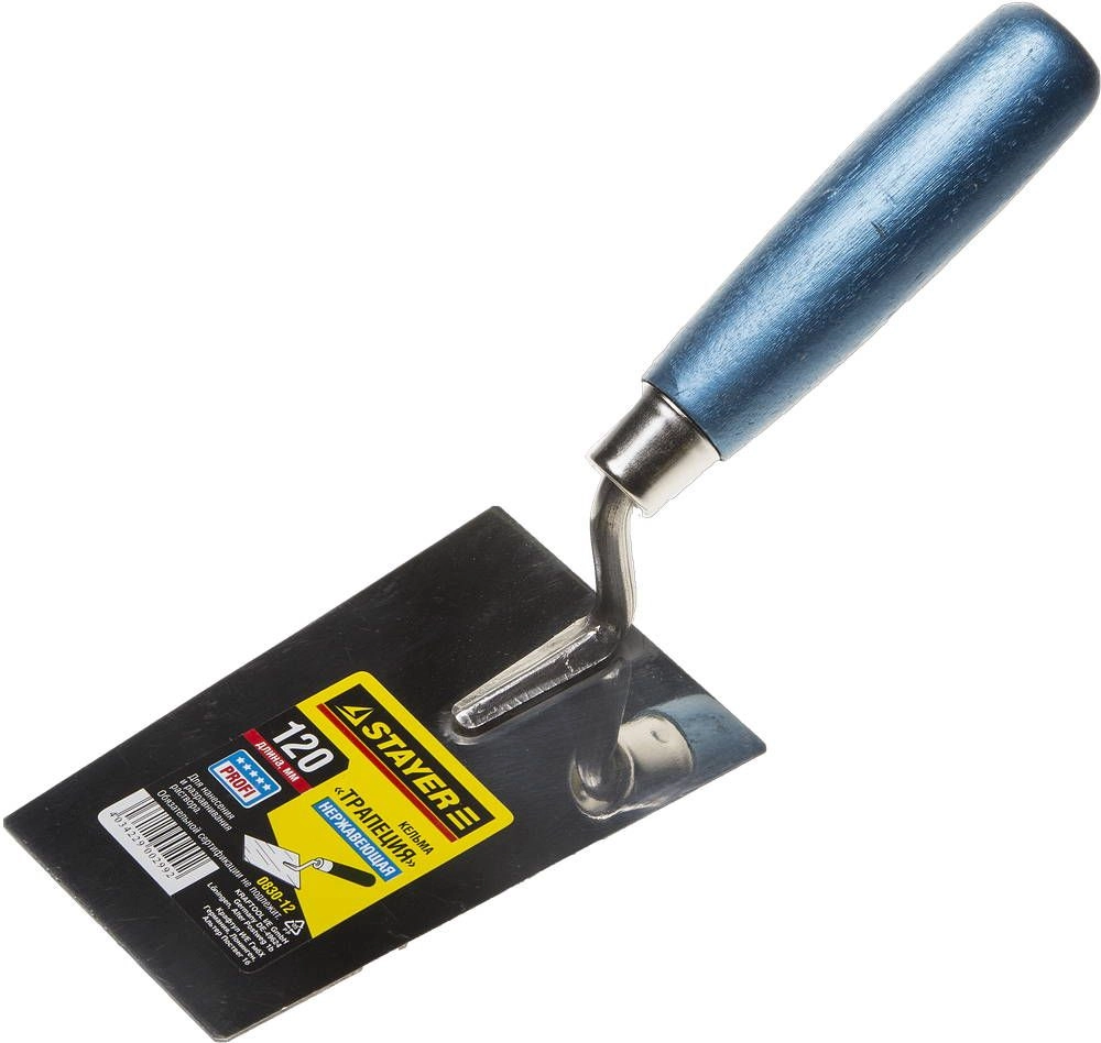 ПроизводителиКельма "PROFI", "трапеция", нержавеющее полотно, дер. рукоятка, 120мм (0830-12) STAYER