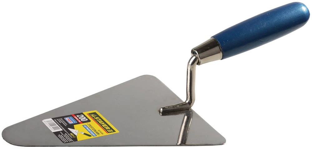 кельма используется для нанесения строительных растворов, нержавеющее стальное полотно обеспечивает прочность конструкции, а двухкомпонентная ручка удобство в работе