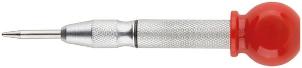 Для нанесения разметки и кернения незакаленной стали твердостью до 45 HRC, а также цветных металлов, пластика, дерева, ЛДСП и т.п. материалов. Благодаря пружинному механизму не требует применения молотка и может использоваться одной рукой. Удобен для работы в труднодоступных местах. Сила удара регулируется поворотом ручки. Твердость наконечника 58-60 HRC. Материал: ручка из ударопрочного ABS пластика, наконечник из быстрорежущей (HSS) стали с никелевым антикоррозийным покрытием, корпус из инструментальной стали с антикоррозийным никелевым покрытием. Упаковка: блистер.Производитель: