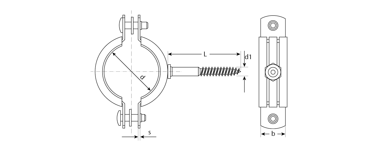 Хомуты крепятся к любым основаниям при помощи сантехнической шпильки и дюбеля;