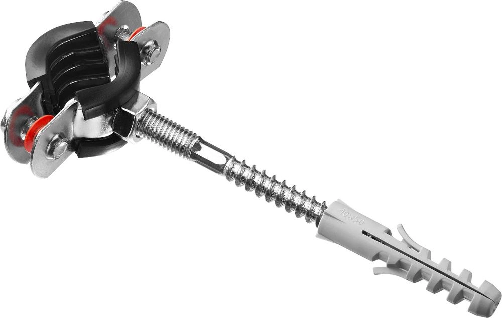 ПроизводителиХомут трубный с гайкой, оцинк., комплект шпилька и дюбель 3/8", 1шт.. (37866-15-19) ЗУБР