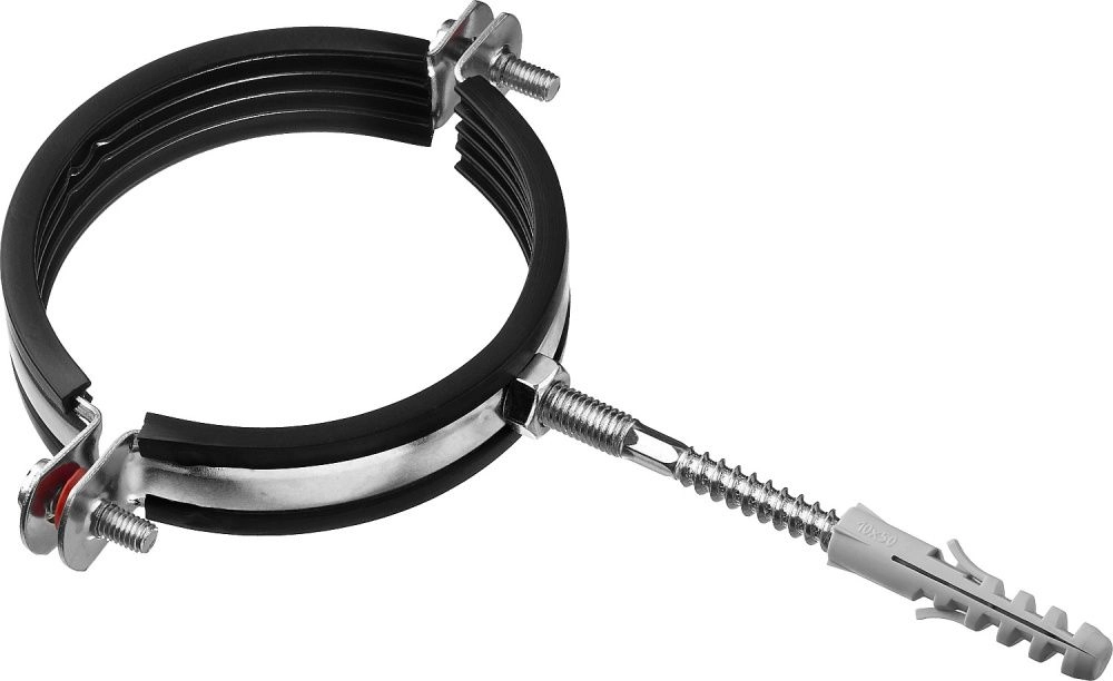 ПроизводителиХомут трубный с гайкой, оцинк., комплект шпилька и дюбель 3", 1шт. (37866-87-94) ЗУБР