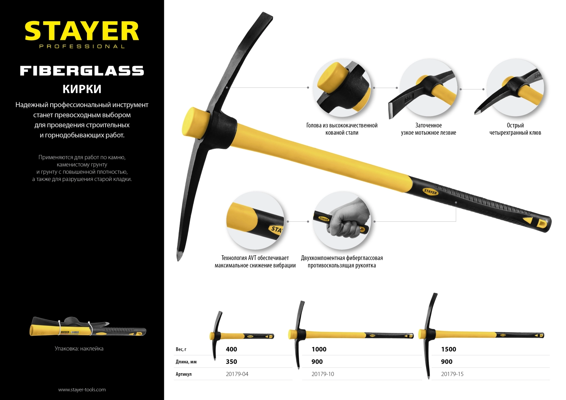 ПроизводителиКирка 1000гр, фиберглас. рукоятка "Professional" 20179-10 (20179-10) STAYER