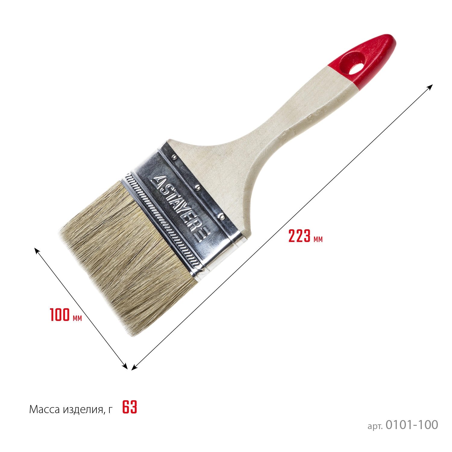 ПроизводителиКисть плоская 100мм, натур. светл. щетина, дер. ручка "Стандарт" (0101-100) STAYER