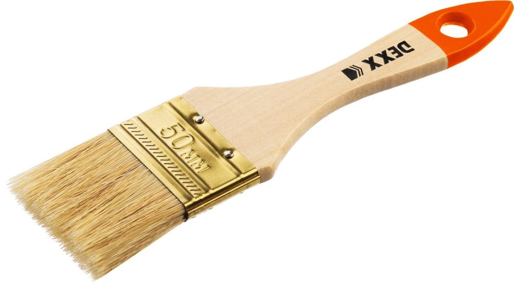 ПроизводителиКисть плоская 50мм, натур. щетина, дер. ручка (0100-050_z02) DEXX