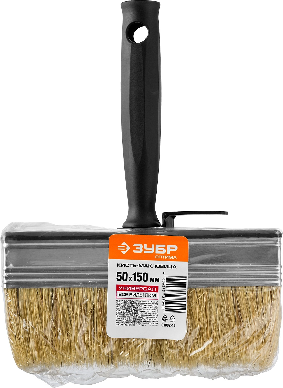 ПроизводителиКисть-макловица 150х50мм, нат. щетина, пласт. корпус "ОПТИМА" (01802-15) ЗУБР