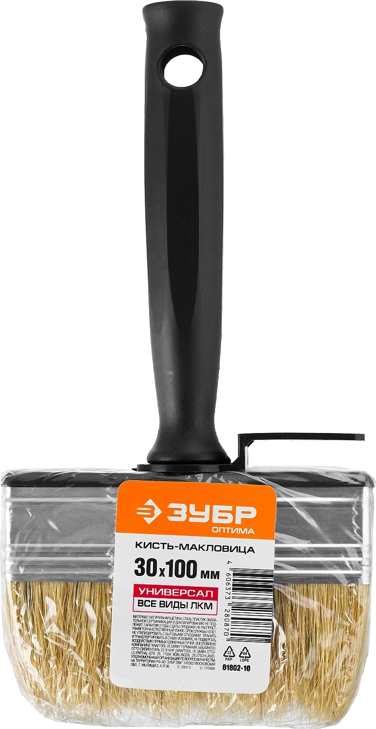 ПроизводителиКисть-макловица 100х30мм, светлая щетина, пласт. корпус "ОПТИМА" (01802-10) ЗУБР