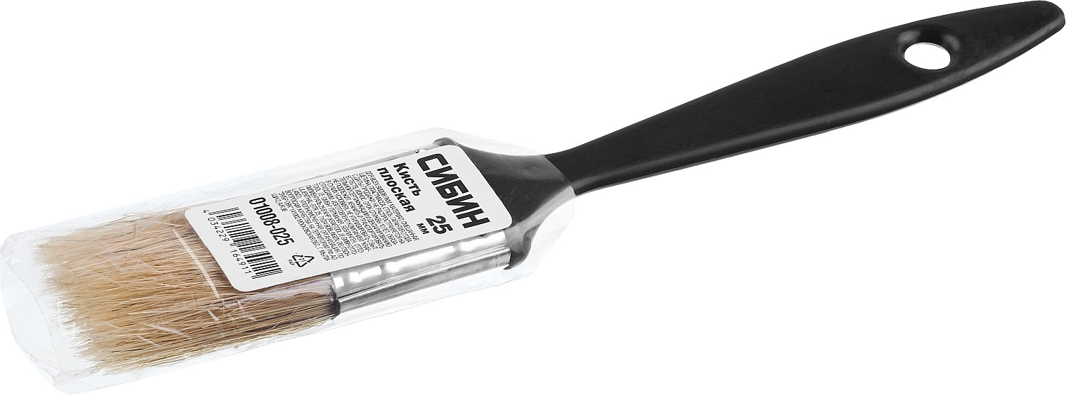 ПроизводителиКисть плоская 25мм, натур. светл. щетина, пласт. ручка (01008-025) СИБИН