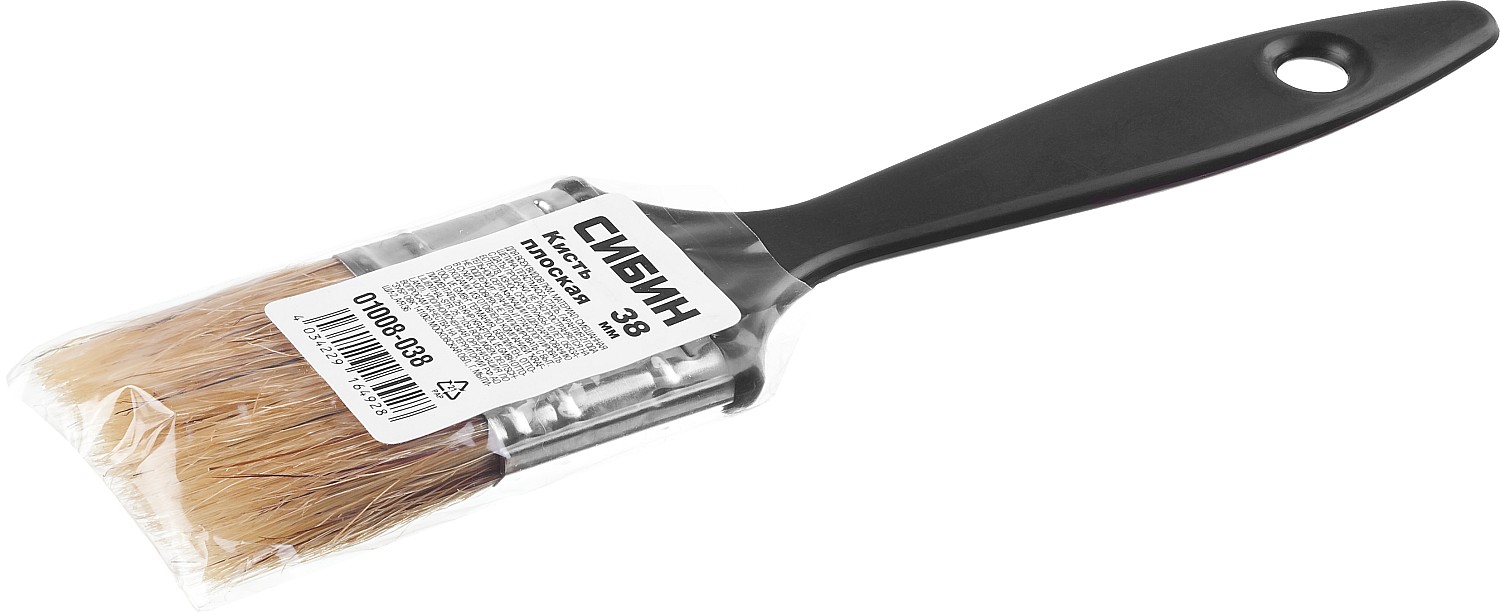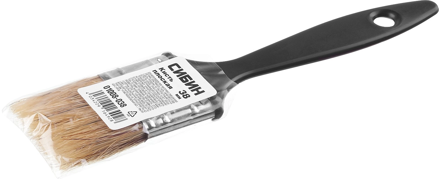 ПроизводителиКисть плоская 38мм, натур. светл. щетина, пласт. ручка (01008-038) СИБИН