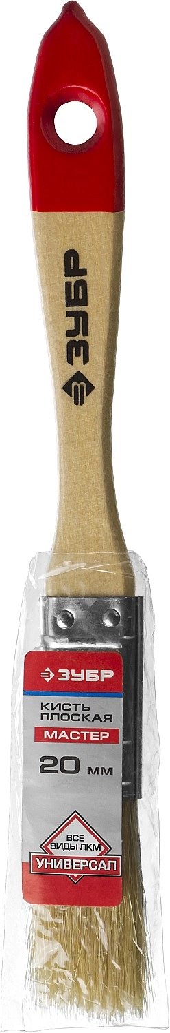 ПроизводителиКисть плоская 20мм, натур. щетина, толщ. ворса 15мм, дер. ручка "УНИВЕРСАЛ" (4-01003-020) ЗУБР